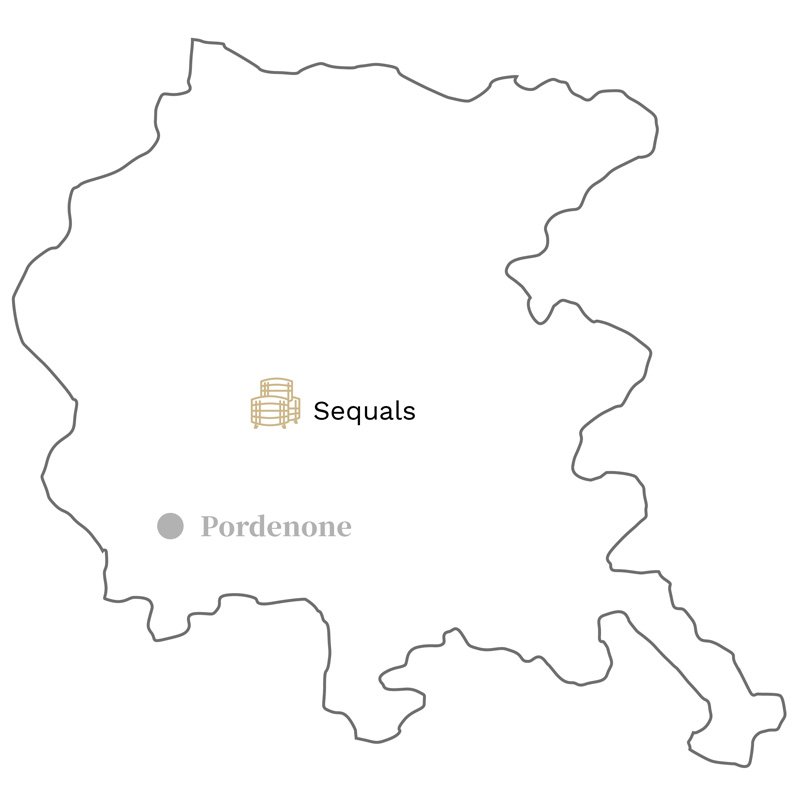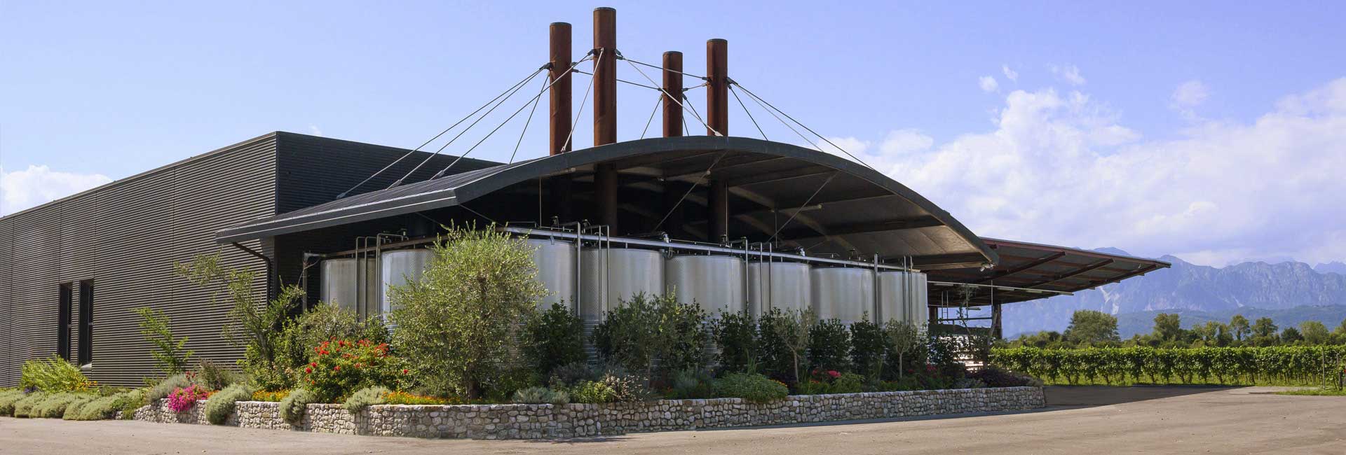 In Sequals, in the heart of the Friuli Grave DOC wine region, the grapes grow in lean soil, composed of more than 80% gravel and stones, called ''claps'' in the local language. Winegrowing here means accepting the austere profile of sometimes harsh nature. Among the stones of Sequals, however, grapes with intense and characteristic aromas are born. The rigorous architecture of the cellar, with its copper-lined walls, blends with the landscape that surrounds it. Here, between a sea of stones and gravel and the panorama of the Carnic Alps, ancient beauty and cutting-edge technologies coincide. The result is wines with an unmistakable typicality: there are some autochthonous types, but there are also international grape varieties that adapt to the particularly lean soil of this territory.