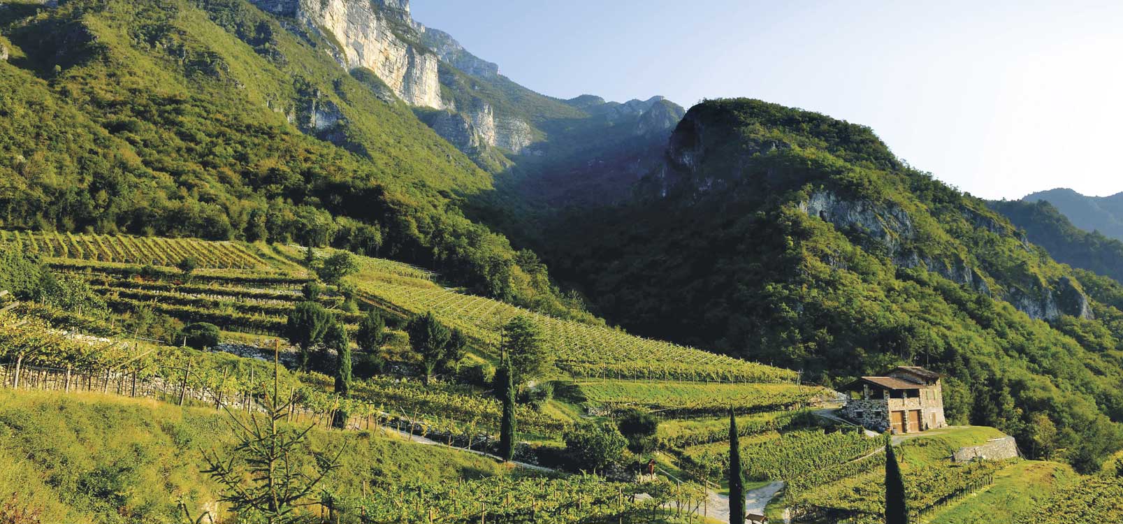 The stretch of Valdadige (the Valley of the River Adige) which lies in southern Trentino is called Vallagarina. Here, the vineyards border the river at the foot of Monte Baldo and the Lessinia Mountains. The land is fertile and marked by the presence of towering mountains, as well as by the vigorous course of the Adige River, which splits through the middle of the vineyards and at the same time caresses the fields. This our native land, where grapes are still grown using the Pergola Trentina vine training system, terraces down from the mountains to the river, and the composition of the soil varies from morainic to alluvial. The microclimate is influenced by the proximity of Lake Garda and defined by important day-and-night shifts in temperature. Consequently, discovering the right exposure to the sun is the secret to making our wines healthy and delicious.