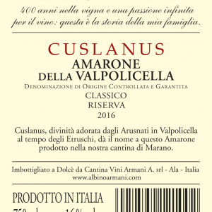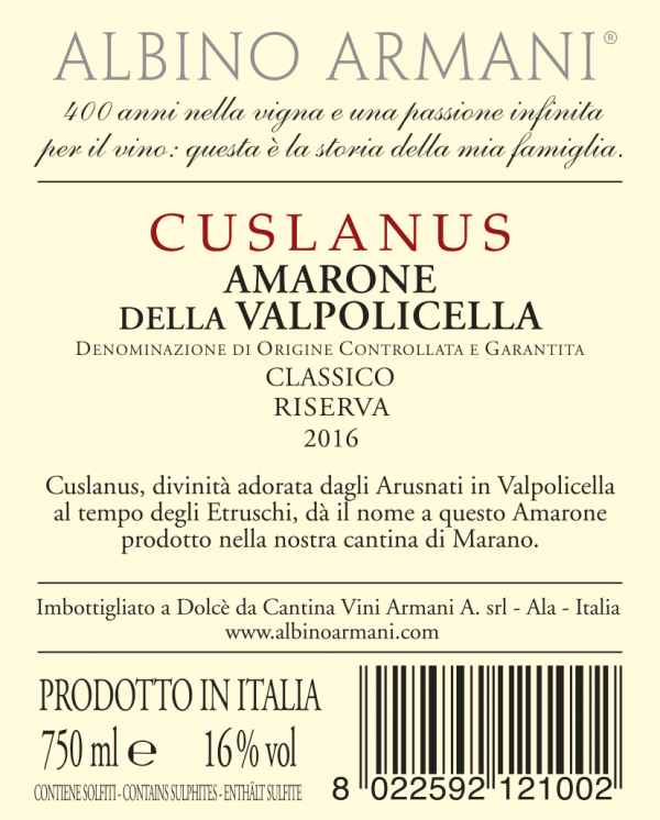 Food pairings: Amarone is the perfect companion to refined dishes like braised meet and game, but it is also perfect as a “meditation wine” for people who enjoy spending time with an unforgettable tasting experience.