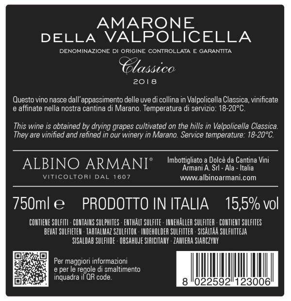 Grape varieties: Corvina, Corvinone, Rondinella.