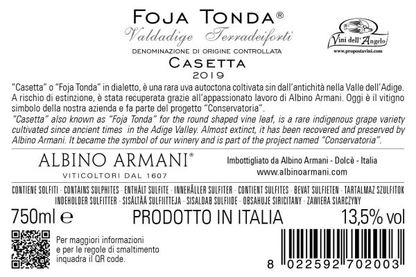Grape varieties: Casetta or “Foja Tonda” in local dialect.