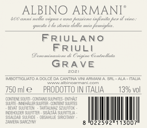 Production area: the grapes are cultivated in the area called “Grave”, located in the north east of Italy, sheltered by the Alps.