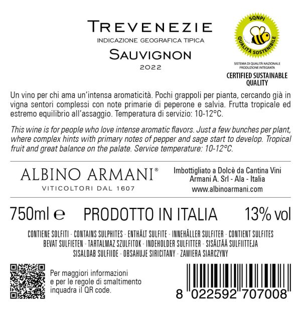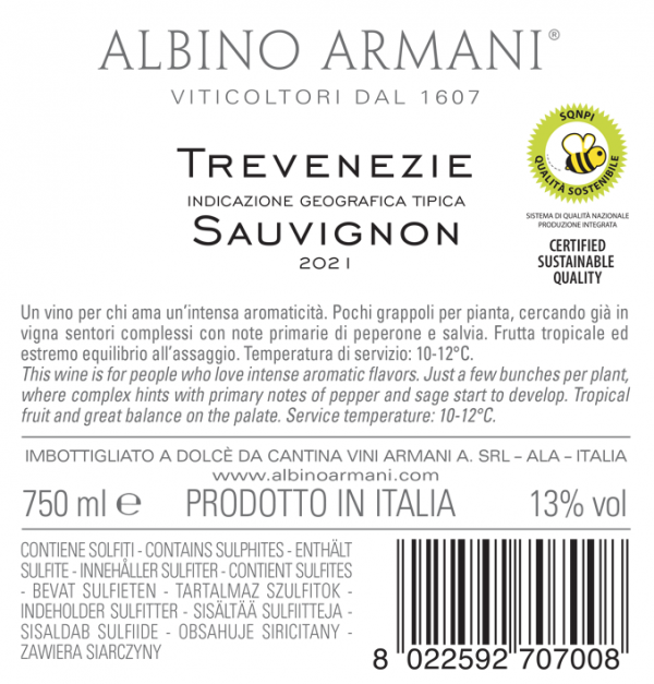 Food pairings: excellent as an aperitif, it is an ideal companion for dishes based on vegetables, especially asparagus, pasta with “pesto” sauce and seafood risotti.